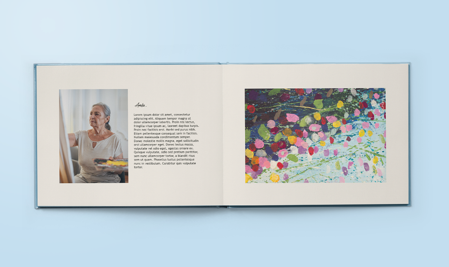 The first step to creating your memorial book is to choose a theme. Either come up with your own theme and start your photo book design from scratch or select one of our ready-made memorial themes. Keep it simple and sophisticated with a classic memorial design, or opt for a modern and colourful design to bring a vibrant feel to their story.