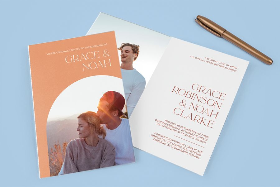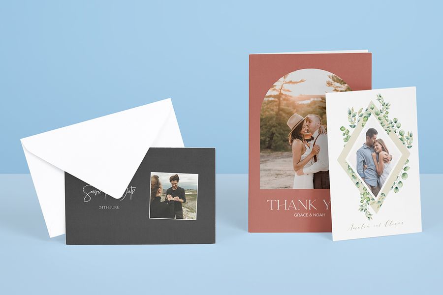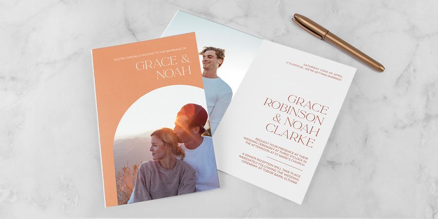 From choosing the perfect paper to selecting your wedding font and matching theme, bonusprint makes creating your perfect wedding invitations and wedding cards a breeze. Ready to get started on your personalised wedding stationery? Browse our wedding card designs and start designing now!