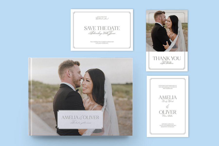 Our tips to create a wedding invite extend to the entire wedding stationery collection. Create a wedding collection with bonusprint, and easily create your save the date, wedding invitations and wedding guest thank you cards using the same theme and style that matches your wedding. Most of our wedding stationery designs also have a matching wedding photo book so you can treasure the memories forever.