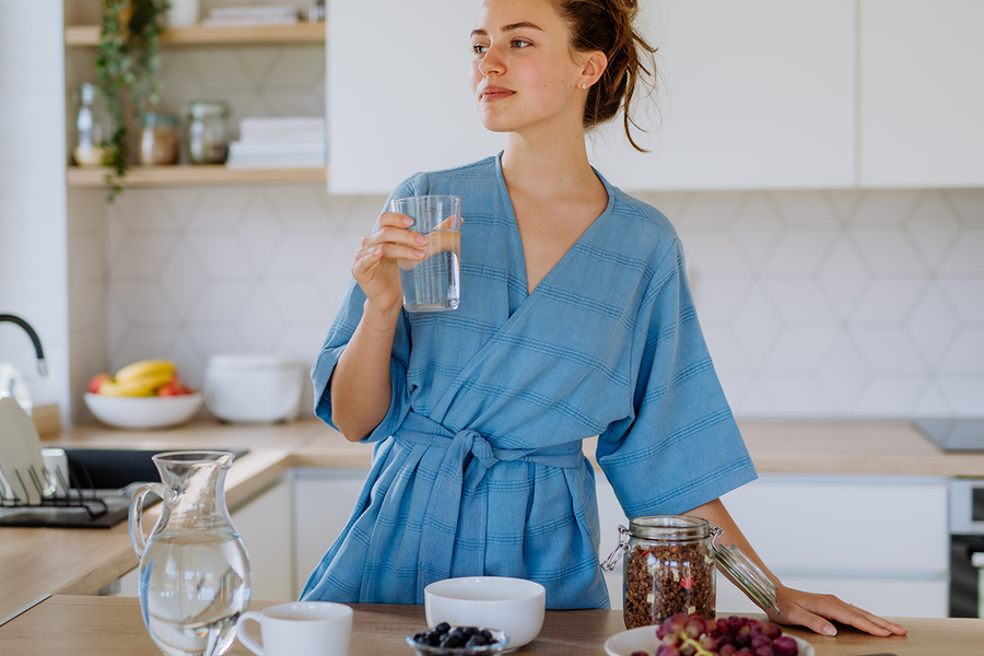 A great tip is to start your day with exposure to natural sunlight: Open your curtains first thing in the morning, or enjoy your morning coffee or tea outside. Just a few minutes of morning sun can signal your body to wake up and regulate your natural circadian rhythms, promoting better sleep at night.