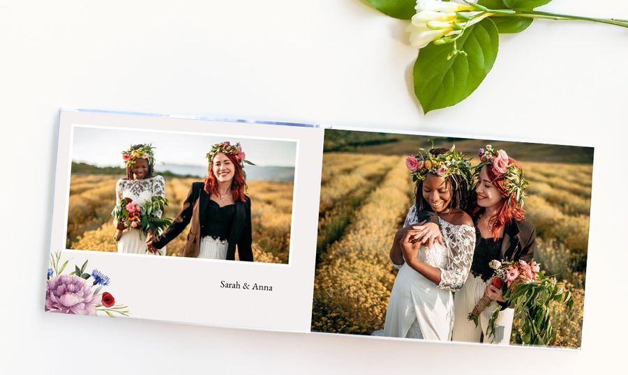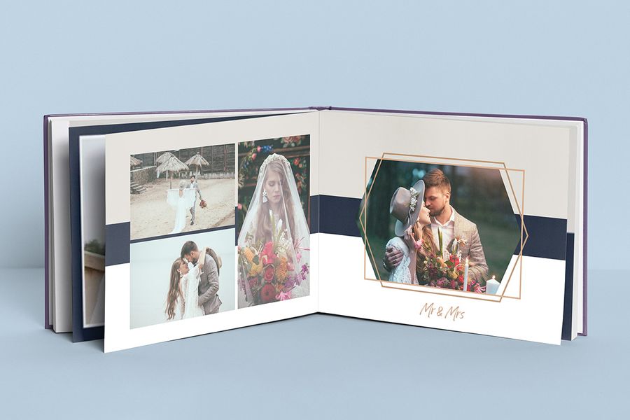 There’s not just one style of wedding that suits everyone’s needs. The same applies to wedding photo books; there’s a range of layouts and sizes that work for different tastes and purposes. You could use a small square photo book to make little keepsakes for your guests. A large portrait book would work brilliantly for posed shots of just the married couple. And an extra-large landscape wedding photo album would make a stunning coffee table book to create a talking point in your living room.