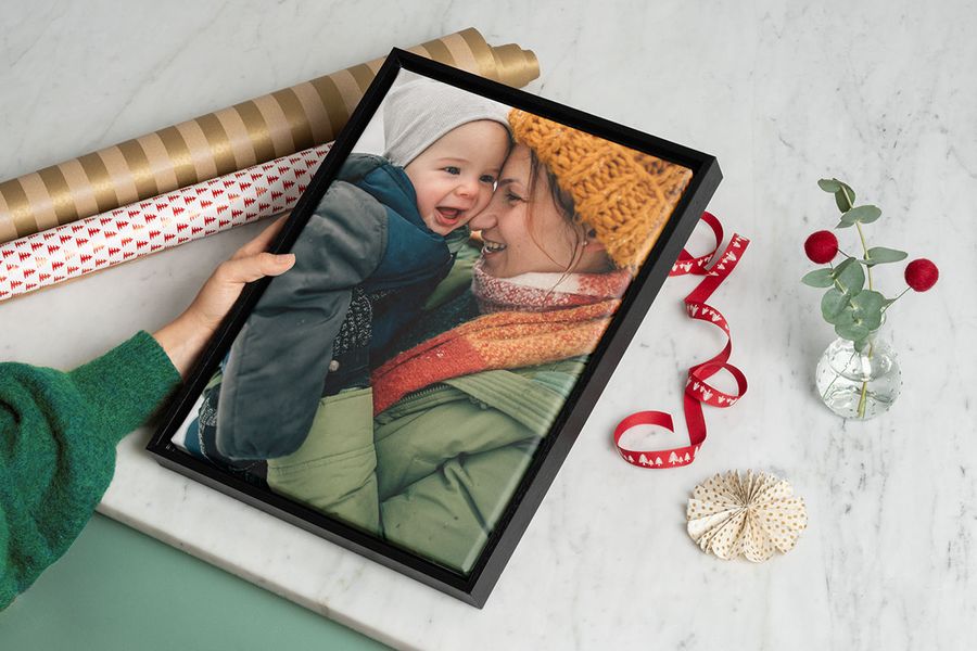 If you want to highlight a particularly brilliant moment that you have a great photo of: go for wall art. From clean aluminium to warm canvas and from small to wall filling large. A wall art is ideal for a baby’s first Christmas gift!
