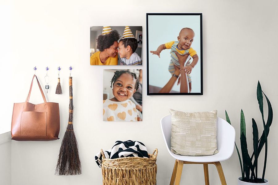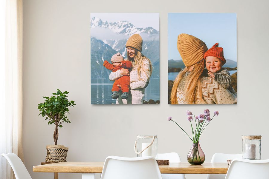 Put your favourite moments up front and centre with acrylic wall art. It’ll add depth to your colourful nature and landscape shots. Portraits also work well with acrylic wall art, thanks to its glossy, high-quality finish. If you’d like to add a subtler touch, decorating with different wall art sizes and materials ensures that the focus isn’t on just one part of the room.