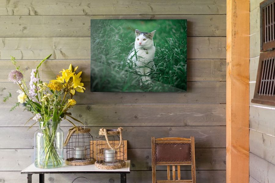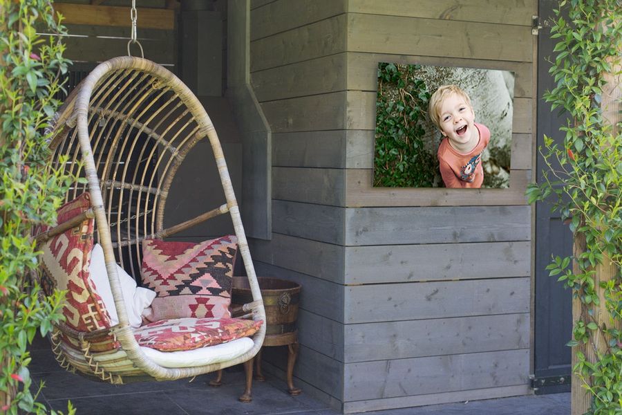 If your shed doubles as a workshop or a garden hideaway, provide a striking contrast to the rustic atmosphere with modern acrylic wall art. To keep an informal, outdoorsy feel, add a picture of your pet on an adventure or a happy snap of your family on a sunny hike.