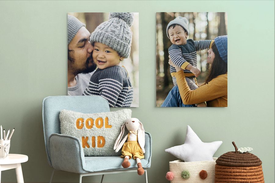 Capture your little ones’ first months with mounted prints. This material is lightweight and goes really well with other wall art materials too, so your collection of baby snaps can keep growing and growing as your little ones do.