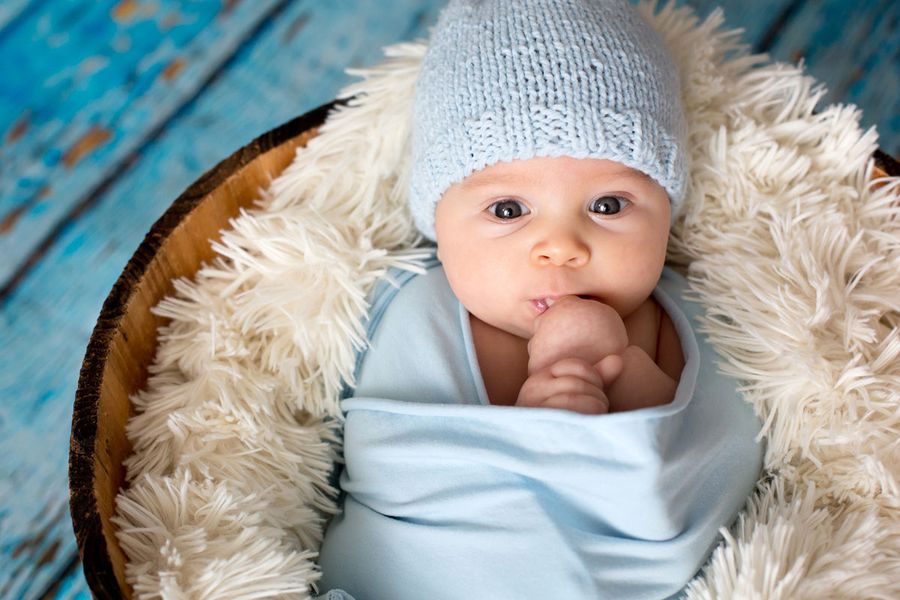 Grab your baby’s favourite blanket and start your photo shoot with a simple swaddle shot. There’s a reason newborns are so often referred to as little “bundles of joy” and this classic shot will forever take you back to those life-changing first few moments after birth. As well as being picture-perfect, babies love being swaddled and will be warm and cosey. Lay them down on your bed, or get creative by popping them in a pretty basket – do this safely and line the basket with soft linens and place it on the floor. Try them on their tummy or side, and if possible uncover their little toes and fingers so you can see them in the shot too. Tuck their hands up under their chin or let them rest naturally and photograph them in their favourite position.