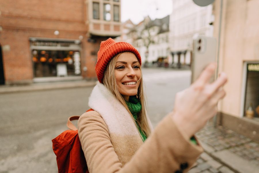 It’s normal that we tend to shoot other people when we’re the ones behind the camera (or with our smartphones). However, city streets are also perfect for creating cool self-portraits. Look for modern buildings with reflective surfaces, such as glass or polished metal, or seek out windows where you can see yourself as well as the interior. Photograph your reflection in mirrors, puddles, ponds and lakes, or grab your friends and family members for a quirky reflective group shot.