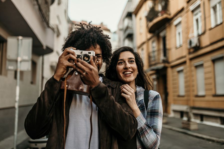 City streets are fantastic places for shooting stylish urban portraits. Whether you’re exploring a new city with your partner, family or friends, be sure to keep an eye out for interesting locations and backdrops. It could be an iconic landmark, such as the Eiffel Tower or the Brooklyn Bridge, or it could be something altogether more “normal” like a park or cool cafe in your hometown. Look for flattering light, tell your subject where you’d like them to stand and start snapping away. You’ll be amazed by how fun and dynamic street portraits can be!